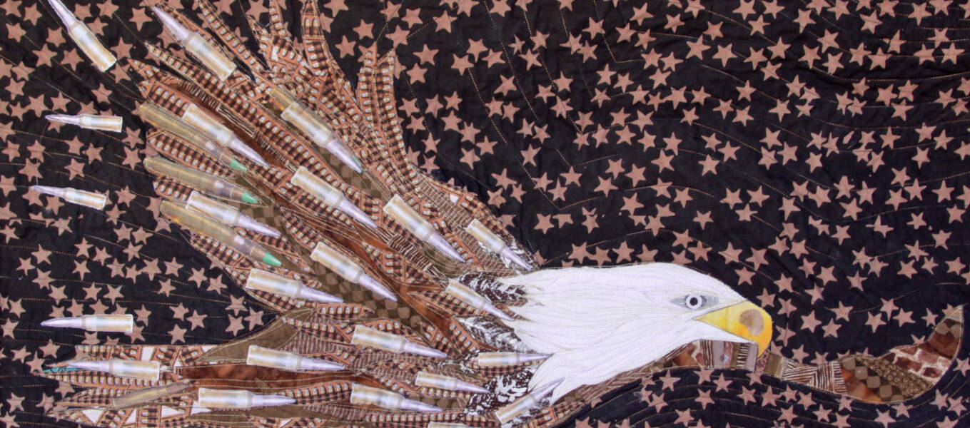 EN: My most unique piece is called House of Guns, a replica of the Capitol Building in Washington, D.C. made up of automatic weapons. The piece speaks to the refusal of Congress to bring gun sense laws to the floor for discussion and was part of a show called Threads of Resistance, which toured the U.S. for two years.